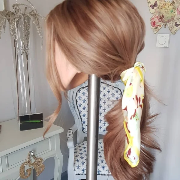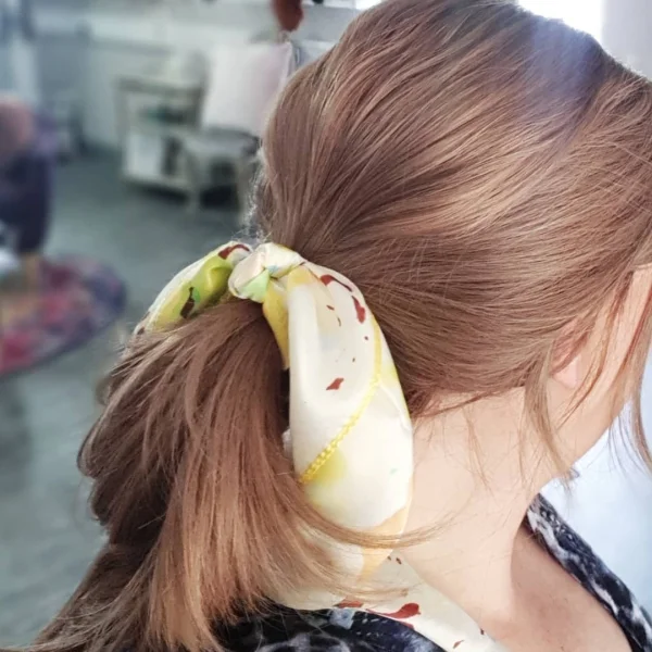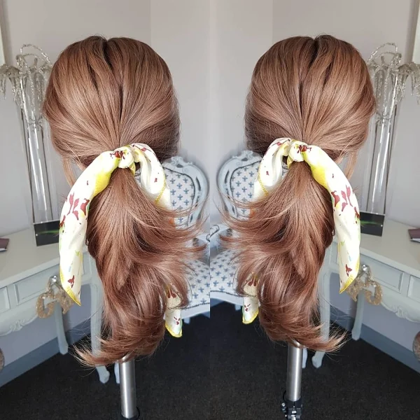 Add pretty silk scarves or large scrunched this not only looks great, but can hind a multitude of sins if your styling isn’t perfect.